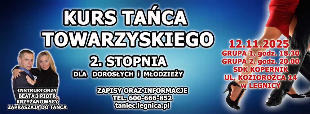 Specjalizujemy się w tańcu towarzyskim. Prowadzimy kursy i szkolenia z zakresu tańca towarzyskiego. Organizujemy również pokazy taneczne. Szkoła Tańca KRZYŻANOWSCY Legnica to tancerze najwyższej, międzynarodowej klasy tanecznej "S" w tańcach latynoamerykańskich i standardowych oraz profesjonalni, dyplomowani instruktorzy tańca.